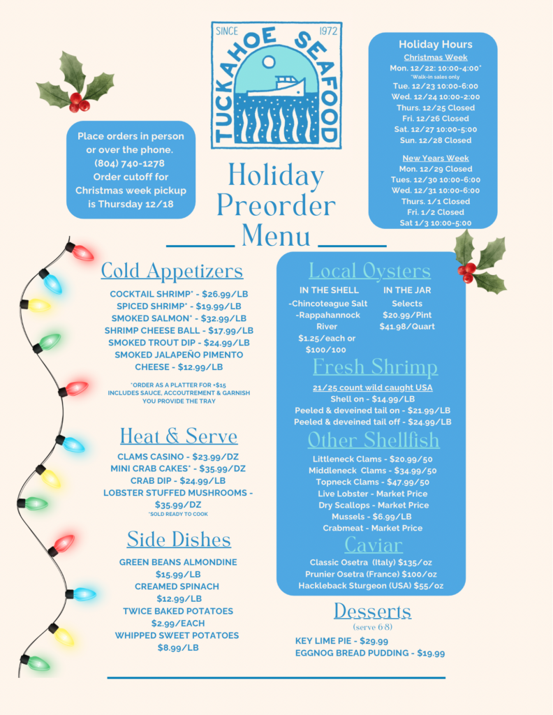 At Tuckahoe Seafood, we are committed to providing you with the highest quality, fresh seafood and best customer service in the Richmond area. Since 1972, we have been offering Richmonders a wide selection of fresh seafood, house-made prepared foods, gourmet grocery items, local produce and meats, as well as beer and wine.